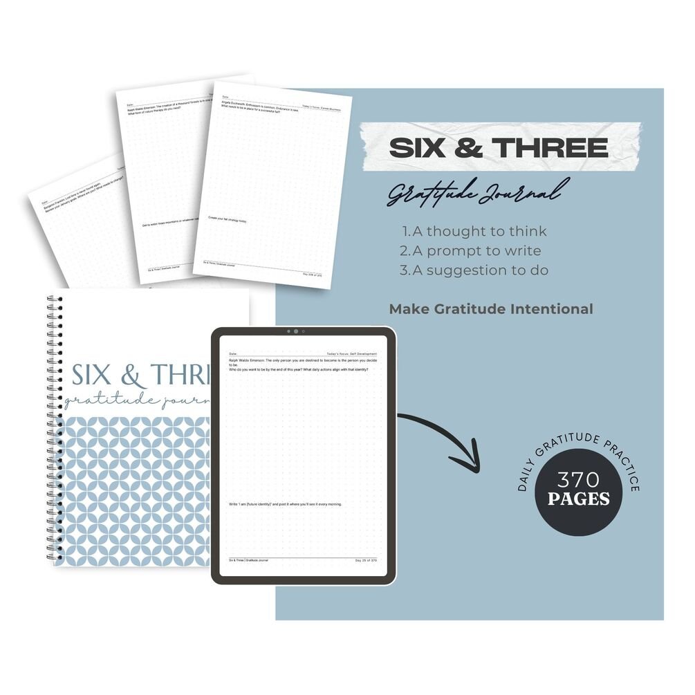 Six & Three Gratitude Journal | 370 Days Digital Printable | Daily Prompts & Practices | Undated Mindfulness Journal